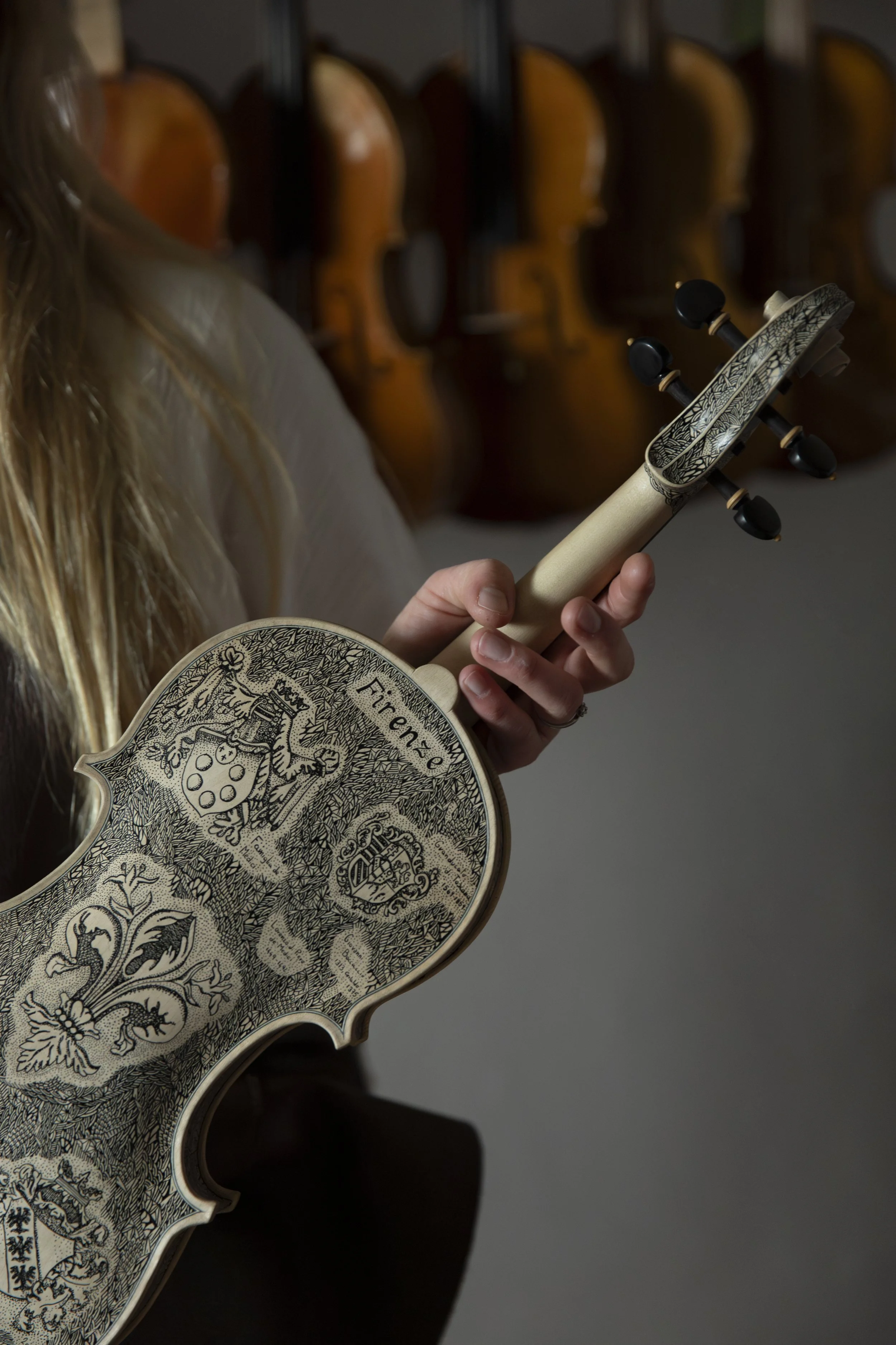 At my home workshop in Florence Italy I handmake new violin family instruments in the historical handtool tradition to the highest level. Each year, I choose to make one or two “anomoly” instruments with modified soundholes or aesthetic touches which are available to commission.